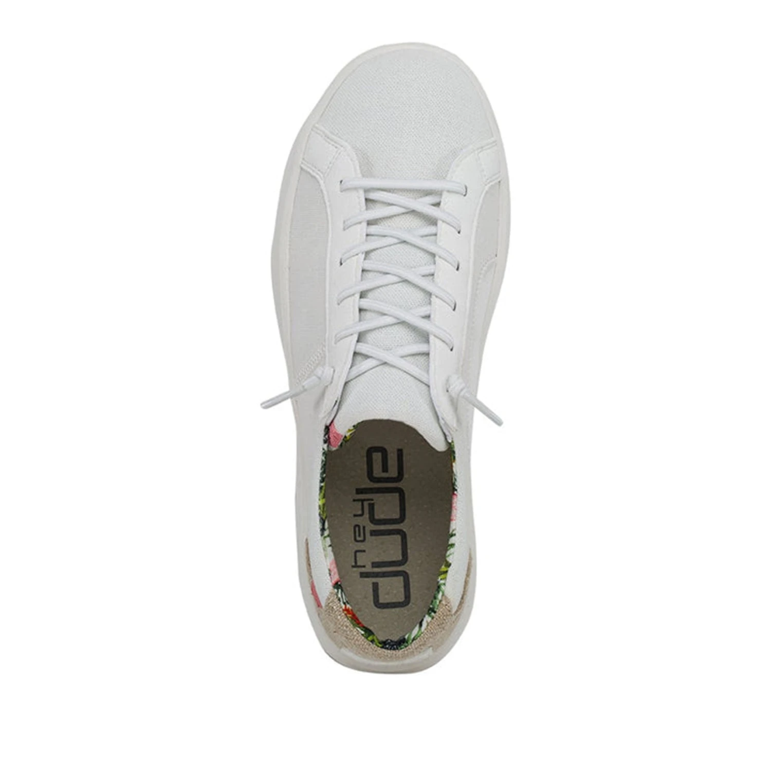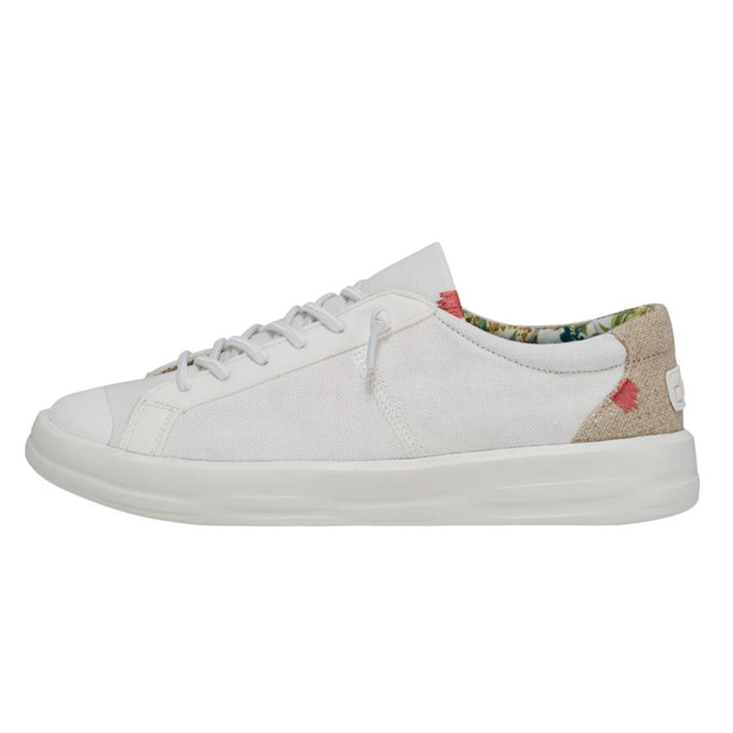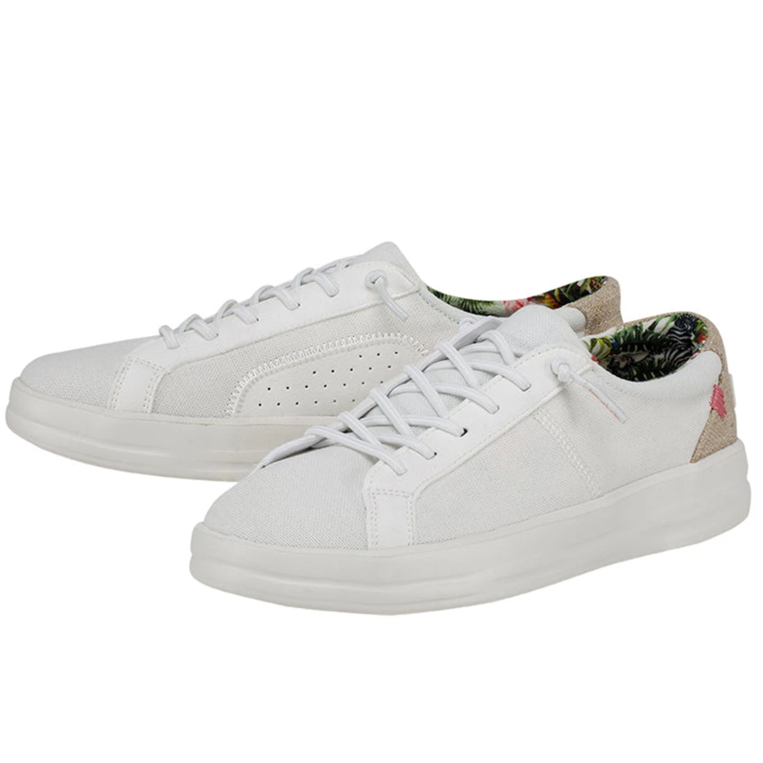 The Hey Dude Karina, Natural Coconut White has a classic style, yet is anything but ordinary! A cotton slip-on sneaker it has the classic style, yet features the comfort you know and love from Hey Dude!!