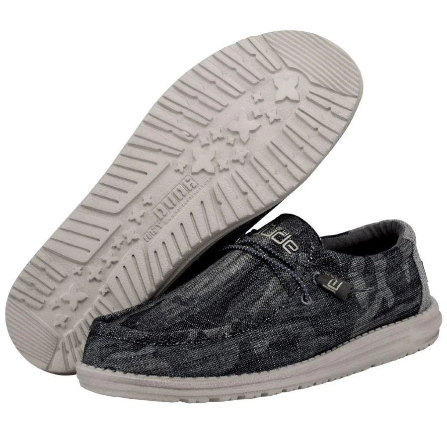 This Hey Dude Wally Camo Tweed is such a fun yet simple and neutral shoe that can complete any outfit. Dress it up or dress it down, the cool black and grey camo print brings such a fun and unique vibe. The unique print is constructed with quality materials like organic cotton and Flex & Fold technology, which is easily the most versatile shoe.