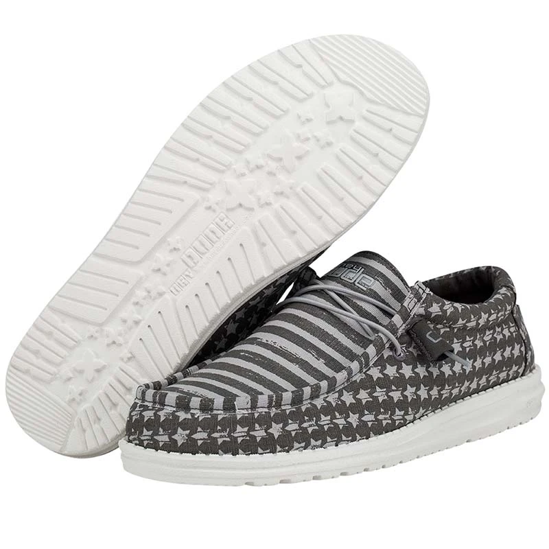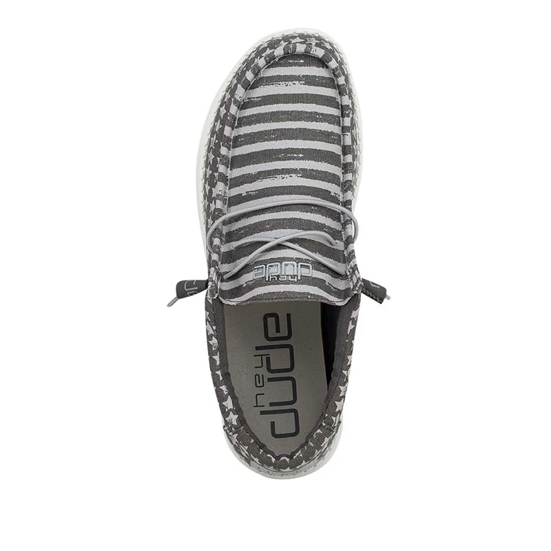 Show your patriotism with these fun grey stars and striped Wally Greyed Patriots! The Flex & Fold sole system make it the lightest, most comfortable shoe on the market today.