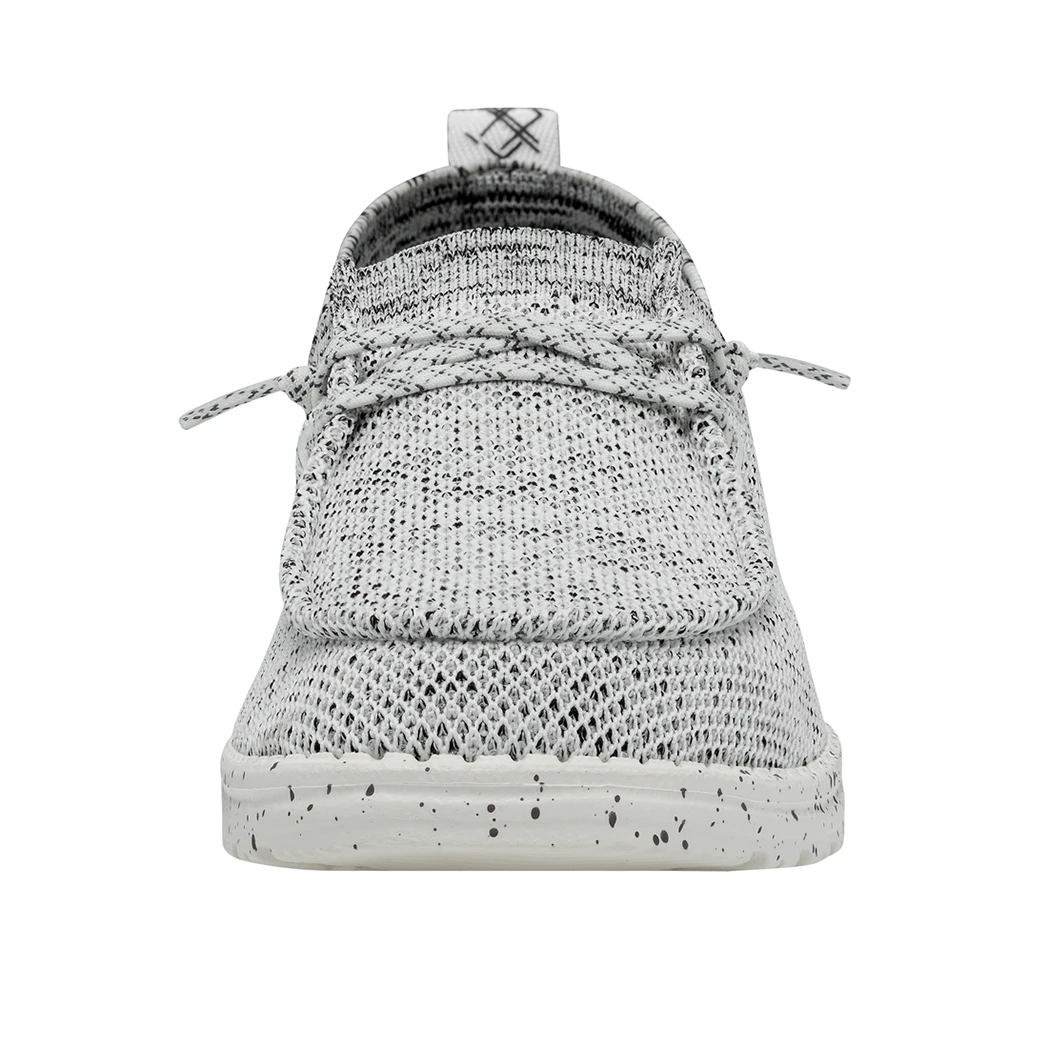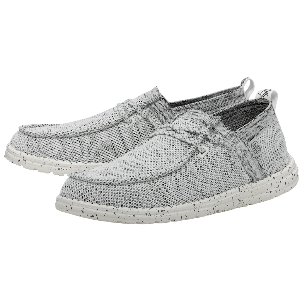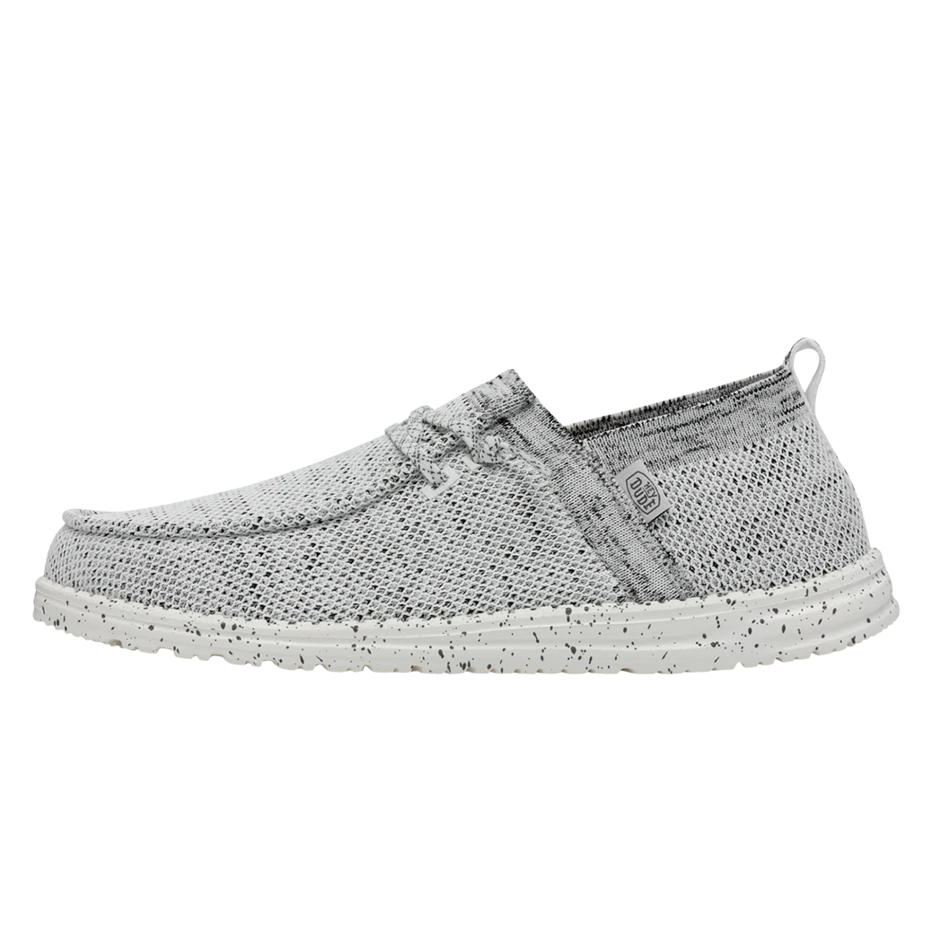 They Hey Dude Wally Halo Stone White shoe, utilizes recycled fibers, to give you a soft and breathable feel with all day comfort. The Halo features the easy-on system with cotton laces and an ultralight outsole. Great for the lake or beach these shoes dry out fast and keep a sock like fit to your foot!Â