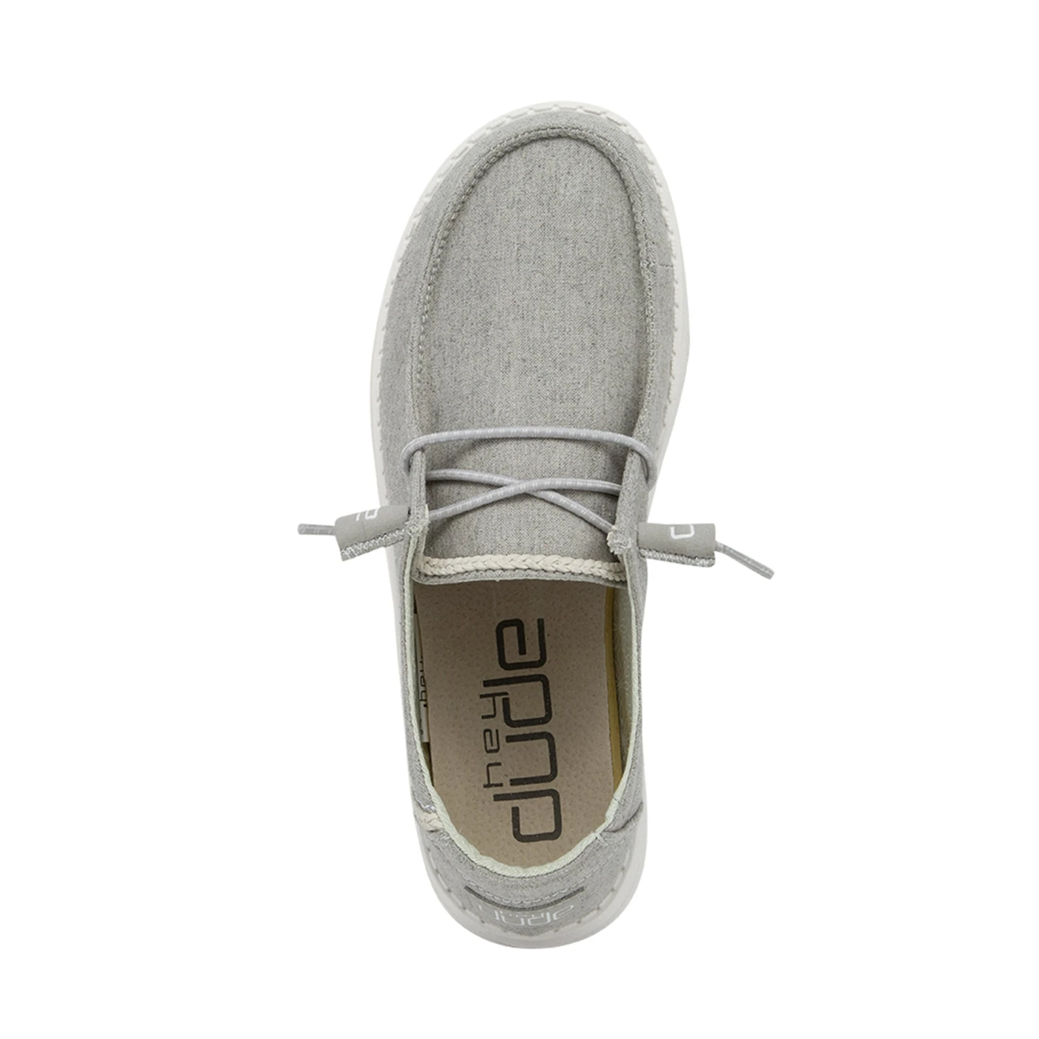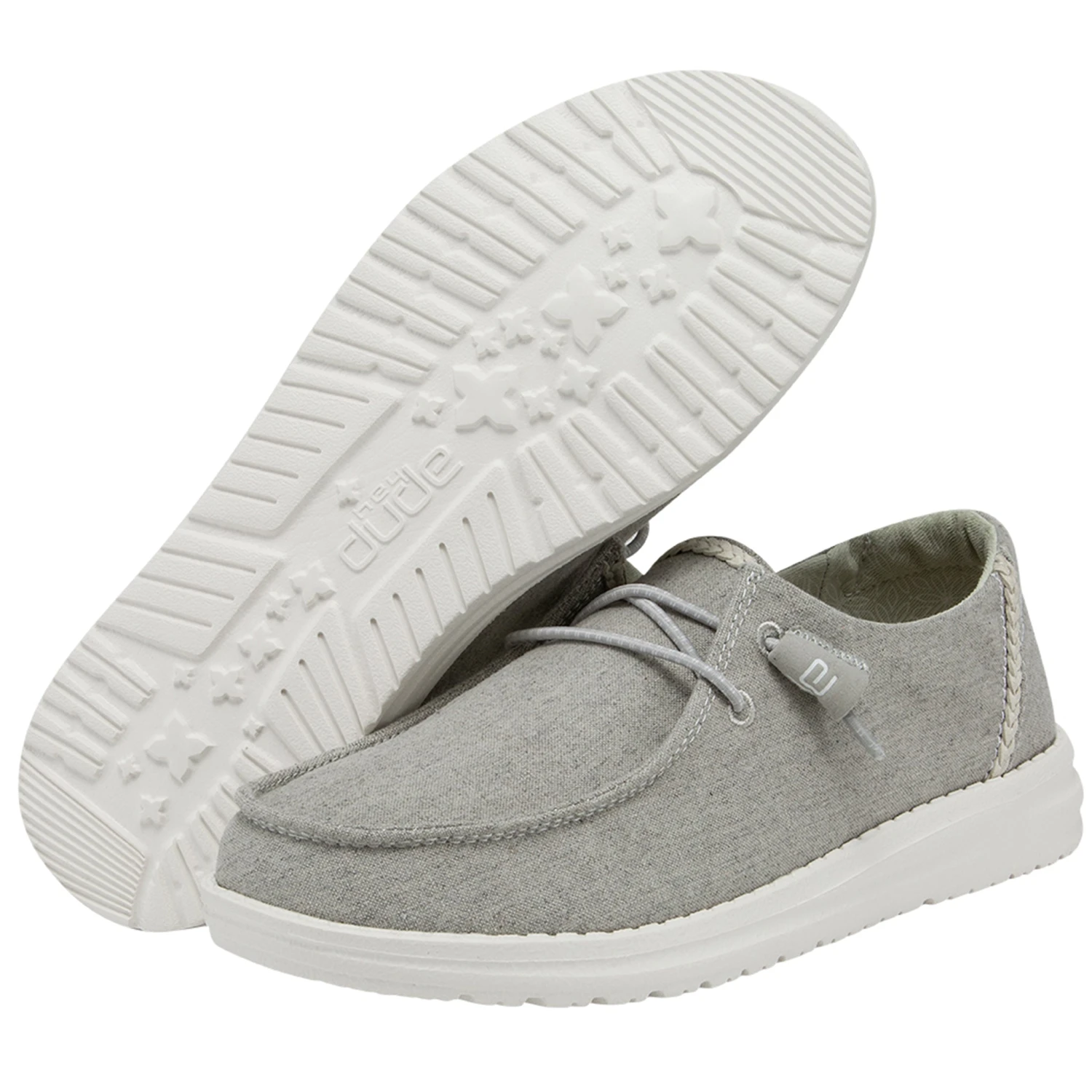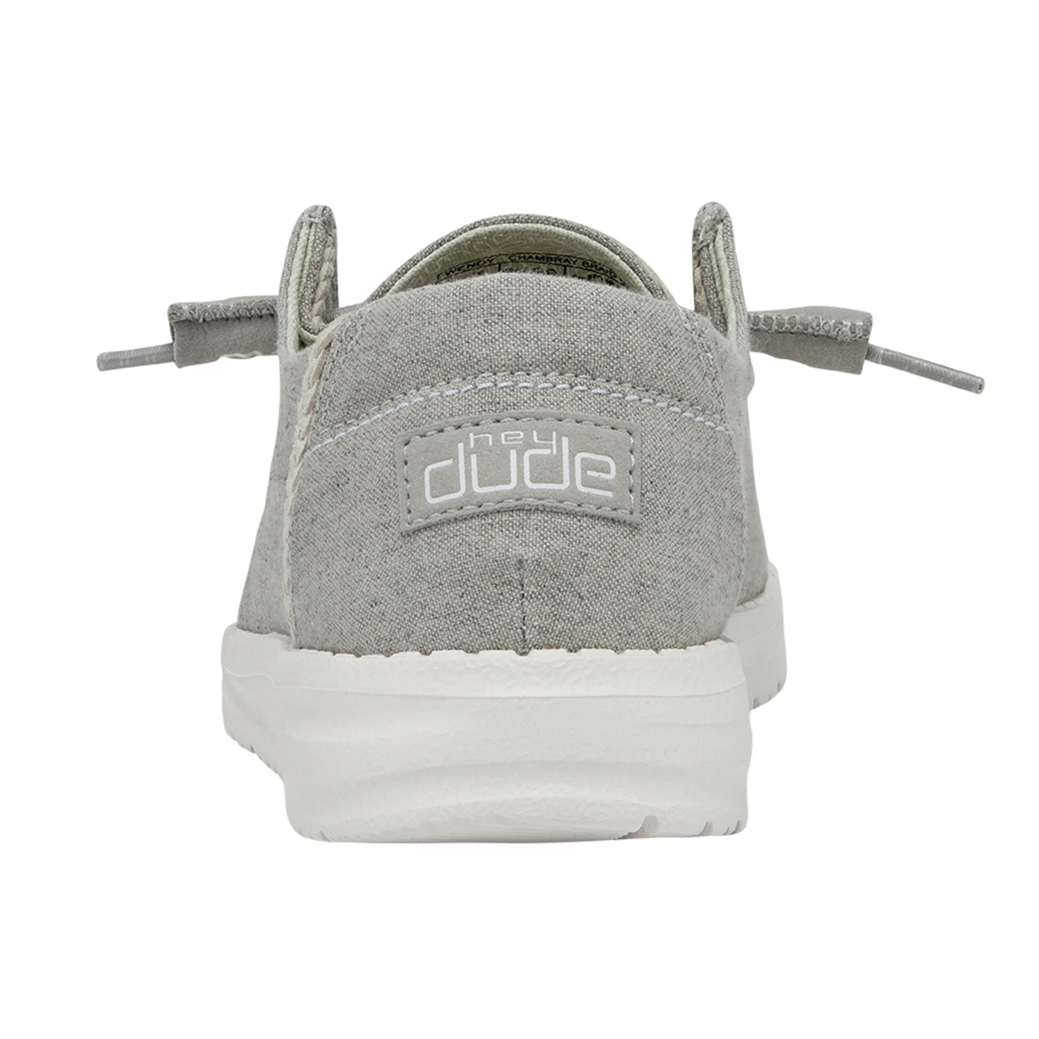 These new Wendy Chambray Braid Grey are so classic and fun! As always, comfort and quality are a given with any style of Hey Dude. Created with a soft, chambray blend upper, finished off with an easy-on elastic lacing system and an ultralight outsole for extra comfort. This design is perfect for all day wear.