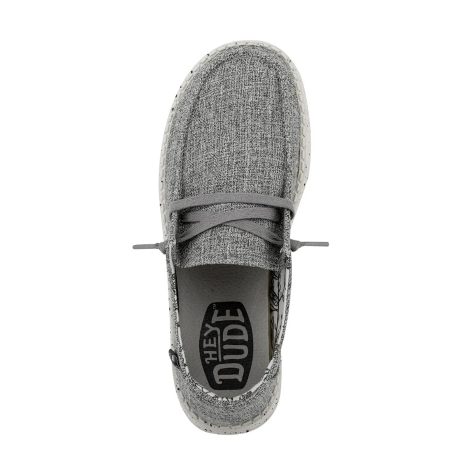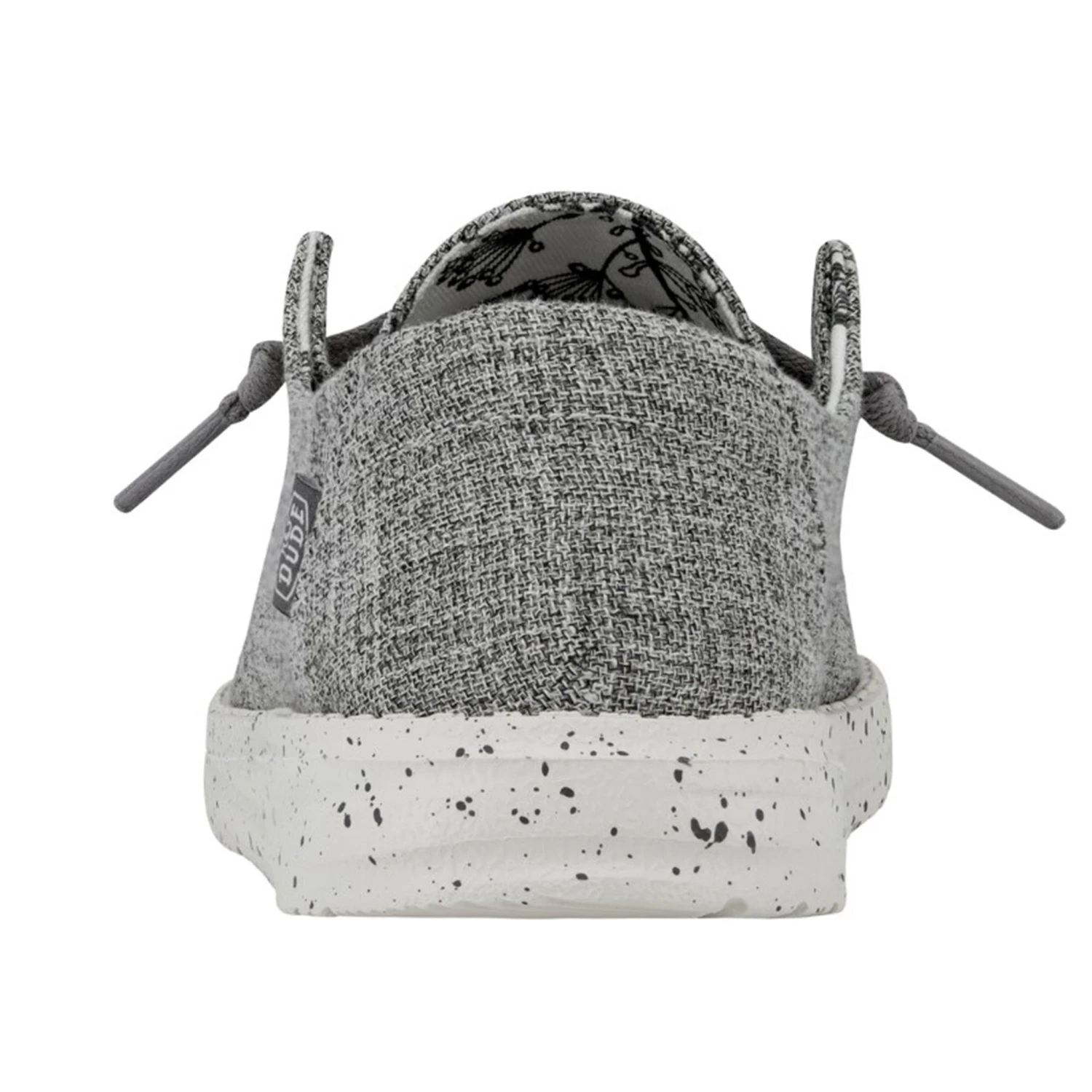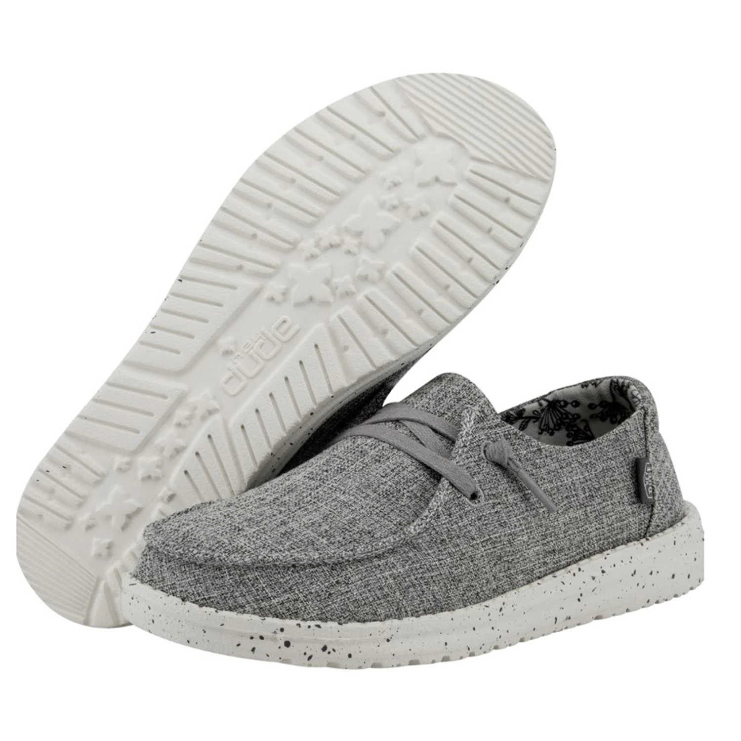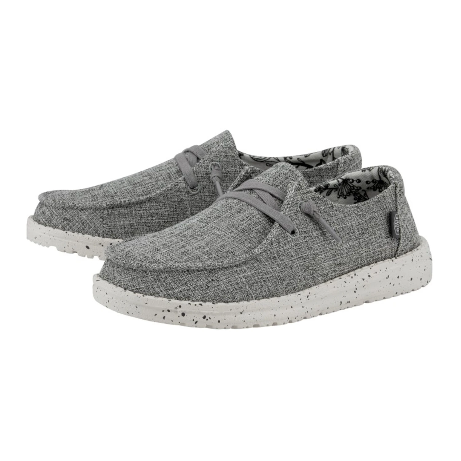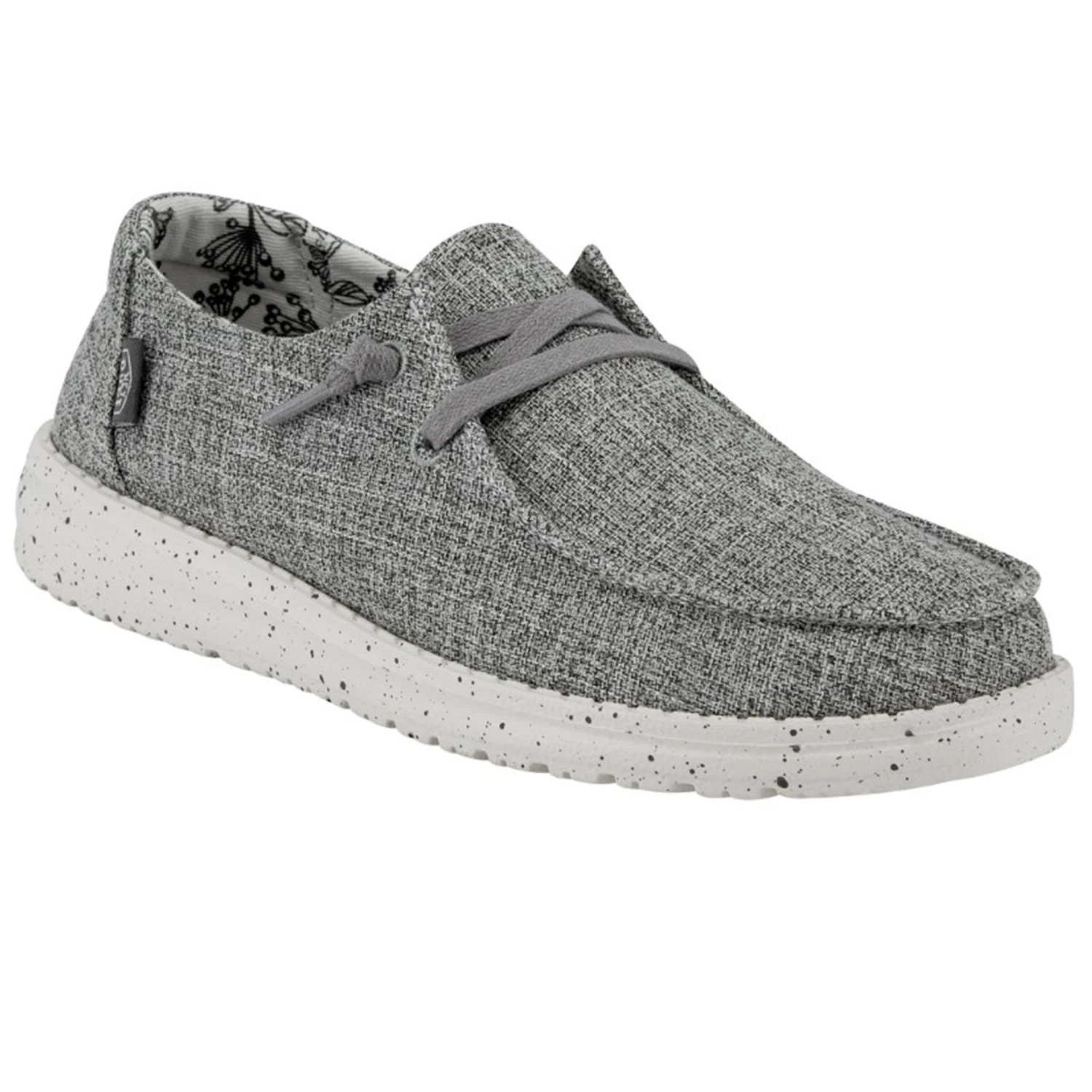 This women’s grey casual shoe from Heydude is lightweight and comfortable! It has a flexible rubber outsole. The material is canvas like and forms to your foot for the perfect fit!Â
